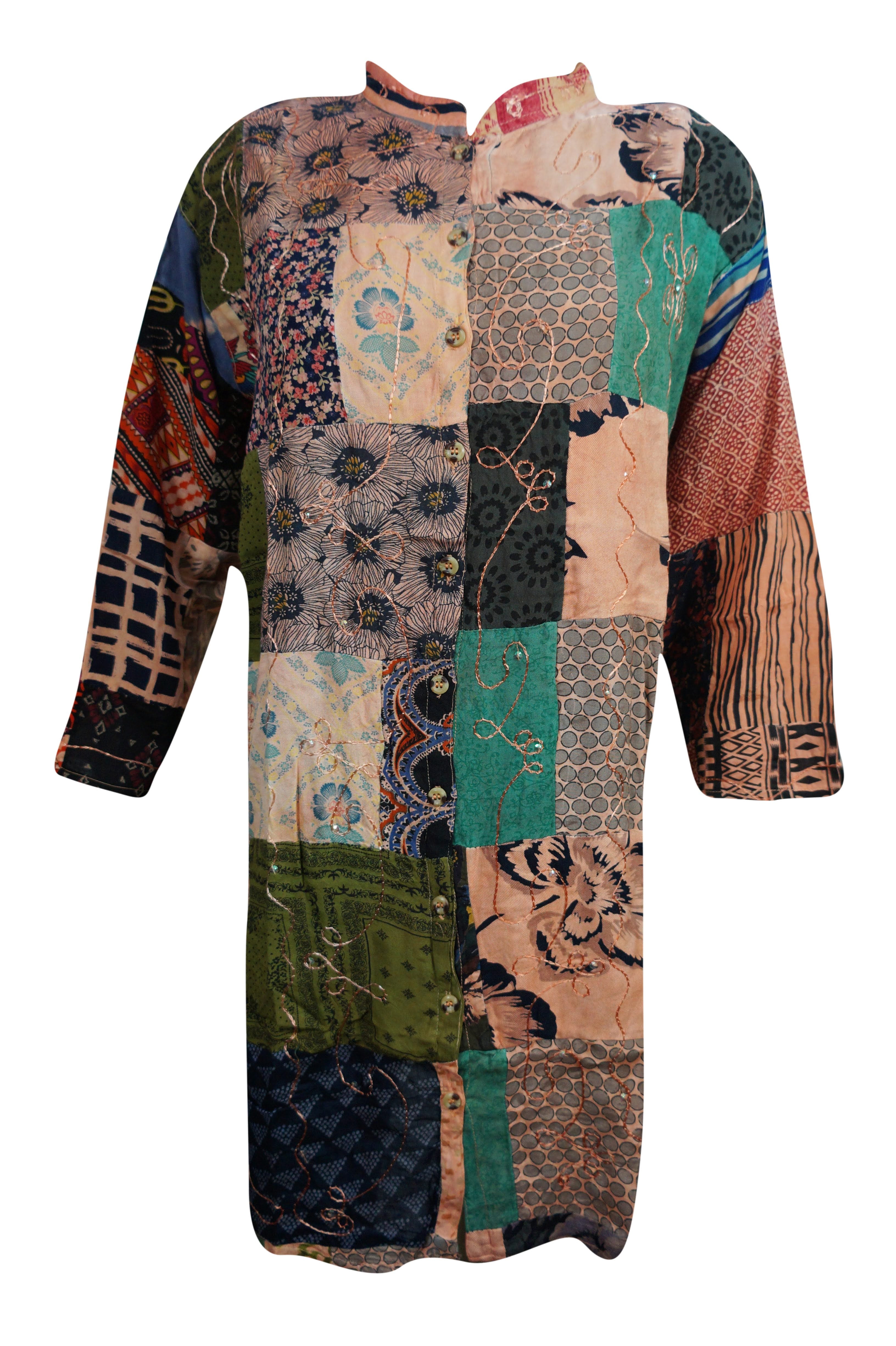 Women Tunic Dress Button Down Patchwork Design Embroidered Long Sleeves Casual Dresses L Walmart Com